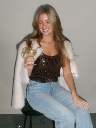 DESCRIPTION: Holiday Merchandise is Final Sale Let the light catch CLEO SEQUIN this party season. Smoke or cranberry sequins sparkle all over her m...