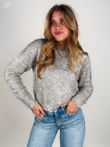DESCRIPTION: HOLIDAY ITEMS ARE FINAL SALE With its relaxed boyfriend fit and metallic-threaded yarn, this cozy sweater adds a little shine to yo...