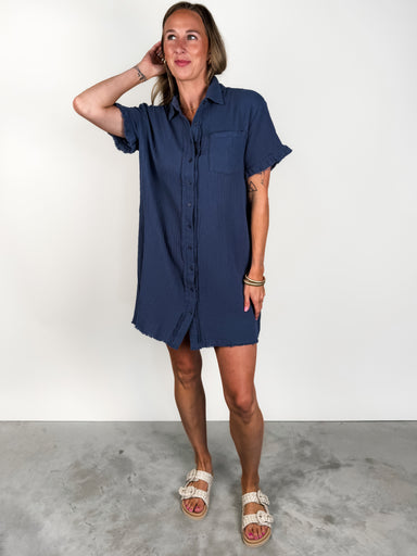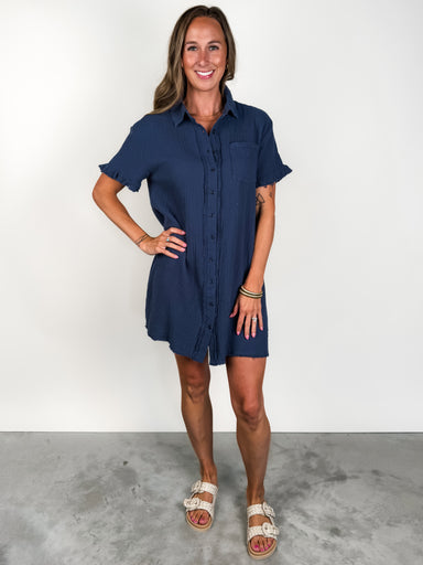DESCRIPTION: The TORI romper features a collared, short-sleeve design with a functional button closure. The romper is finished with a stylish tie...