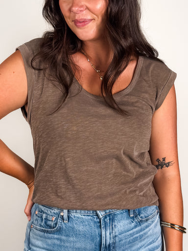 DESCRIPTION: Rounded Neckline Bra-Friendly Straps Ribbed SIZE & FIT: Style is fitted. Model is 5'7 and is wearing a size S. MATERIAL &am...