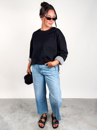 DESCRIPTION: SIZE & FIT: Style is relaxed. Model is 5'9 and is wearing a size S. MATERIAL & CARE: