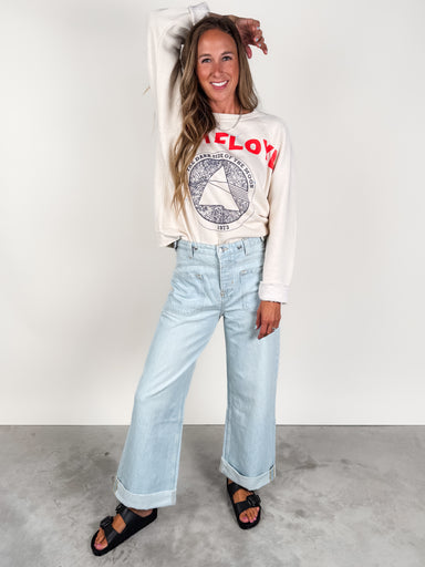 Best SellerDESCRIPTION: Rounded Neckline Dropped Shoulder Textured Fabrication Banded Bottom SIZE & FIT: Style is relaxed. Model is 5'4 and is weari...