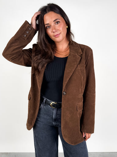 DESCRIPTION: Lined 3/4 Ruched Sleeve with Button Details Faux Front Pockets One Button Closure at Front SIZE & FIT: Style is relaxed. Mod...