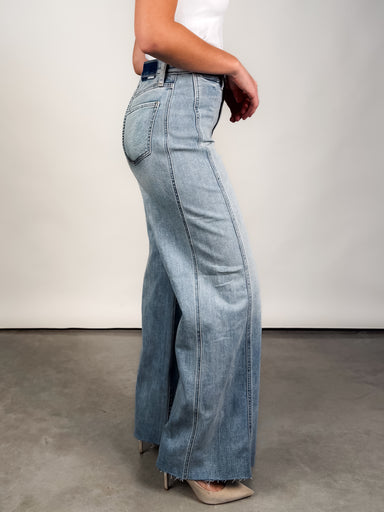 DESCRIPTION: The Madison in Moonlight Rinse is a mid rise wide leg jean in a timeless dark wash. This laid-back jean features a drawstring waist ...