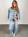 Style is relaxed. Model is 5'8 and is wearing a size S.