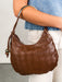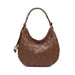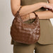 Lucia Hobo — woven-front crescent with a sculptural metal handle. Woven front, smooth back, knotted side strap with a polished metal bead, curved metal top handle. Compact yet roomy; zip-top secures essentials. Ideal for daytime-to-evening looks, pairs with tailoring or weekend denim. A modern, fashion-forward hobo for women who favor texture, clean lines, and practical organization. *Item Type: Hobo *Material: Vegan Leather
