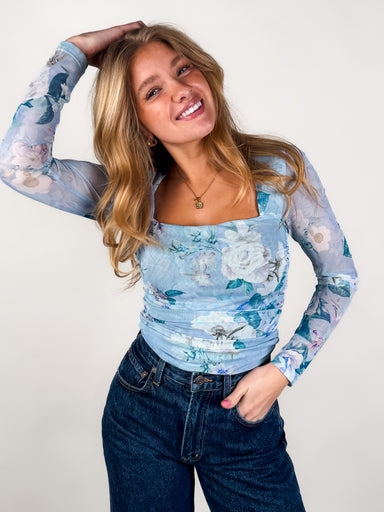 DESCRIPTION: Lined Bodice Sheer Sleeves Square Neckline Side Ruching SIZE & FIT: Style is fitted. Model is 5'8 and is wearing a size S. ...