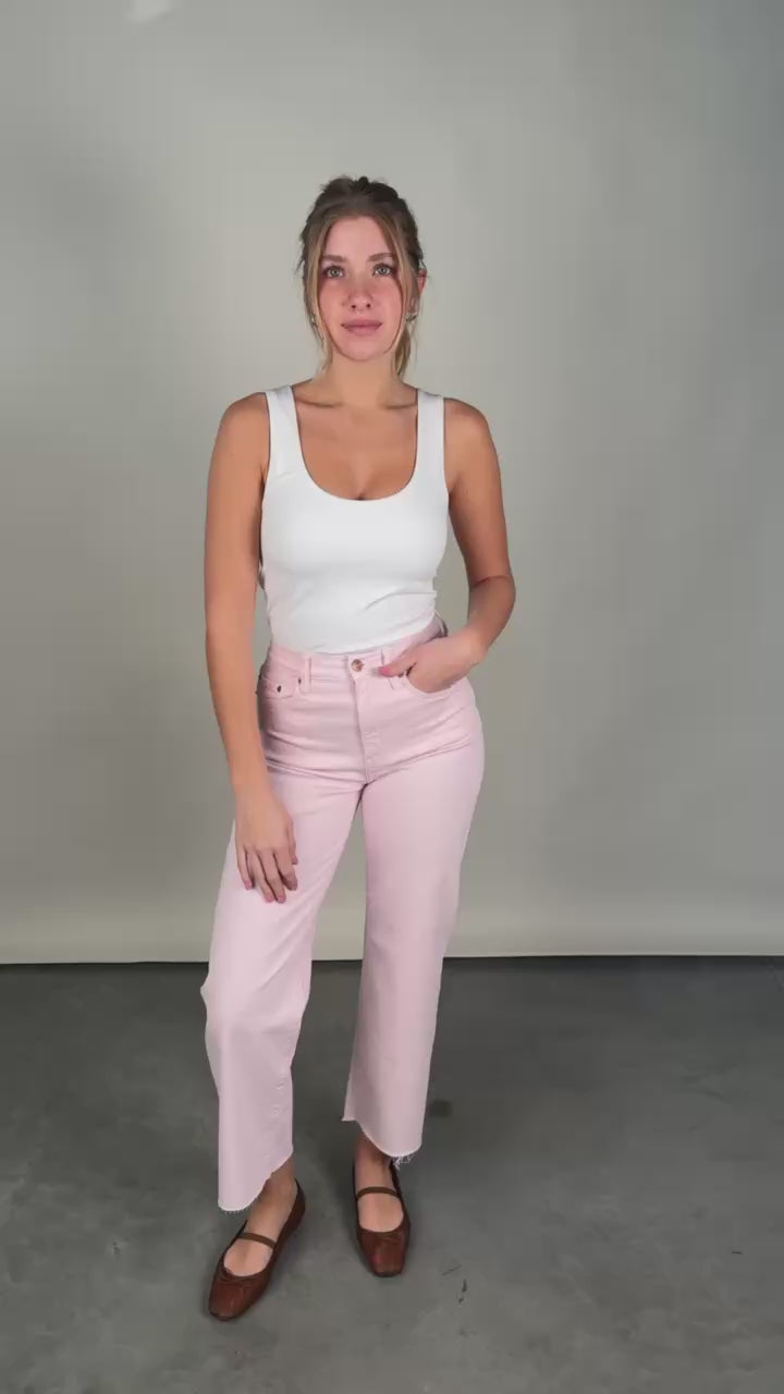 This version of the Pleaser brings the same waist-cinching, leg-lengthening silhouette but in a soft, pretty pink wash that instantly brightens your outfit. The high rise shapes the waist, while the wide ankle leg feels modern and flattering. Made from our comfort stretch denim, it has just enough give to move with you while still holding everything in.
