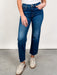 Hidden treasure. A classic skinny flare with a mid rise, zip fly and a long 34-inch inseam with a clean hem. Made from stretch denim, Prized Possession is a mid blue with subtle whiskering and fading at the knees.