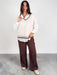 Style is relaxed. Model is 5'9 and is wearing a size L.