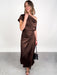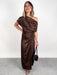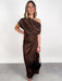 - One shoulder neckline with gathered short sleeve detail for a sculptural look -