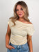 Level up your tops collection with this contemporary off-the-shoulder design, featuring delicate lace paneling, a fitted, flattering bodice, and a loose bust for a unique silhouette.