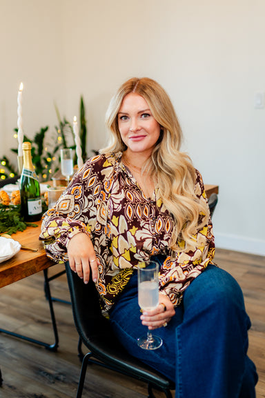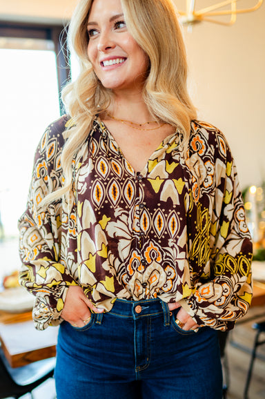 DESCRIPTION: Split Neckline Tie Detail at Neck Button Closure at Cuffs Functional Front Buttons Relaxed Fit SIZE & FIT: Style is relaxed....