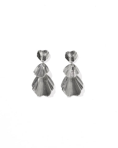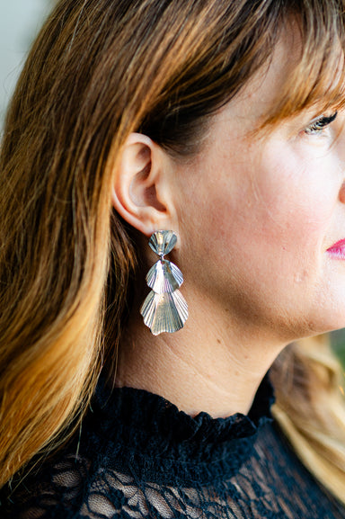 DESCRIPTION: The Wynn Statement Earrings in silver bring sculptural elegance to your jewelry collection. Designed with three cascading petal-like...