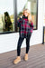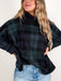 The Carla Sweater is a cozy and stylish addition to any wardrobe. Made from brushed knit fabric, this sweater is soft to the touch and perfect for keeping warm on chilly days. The dolman sleeves and rolled turtleneck add a trendy touch, while the plaid pattern and ribbed sleeve openings give it a classic and timeless look. The curved hem adds a flattering silhouette, and the one-size-fits-most design makes it a versatile option for any body type. With a length of approximately 28" from shoulder to hem, this sweater is perfect for pairing with leggings or jeans for a comfortable and chic outfit.