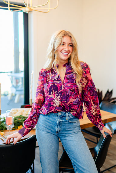 DESCRIPTION: Chiffon Fabrication Split Neckline Button Front SIZE & FIT: Style is relaxed. Model is 5'8 wearing size S. MATERIAL & C...