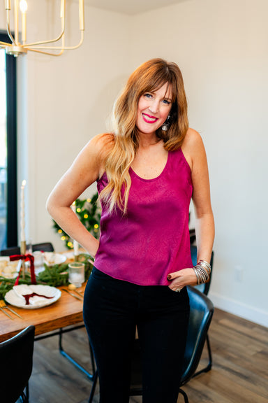 DESCRIPTION: Crushed Satin Fabrication Bra Friendly Straps Relaxed Fit U-Neck SIZE & FIT: Style is relaxed. Model is 5'10 and is wearing ...