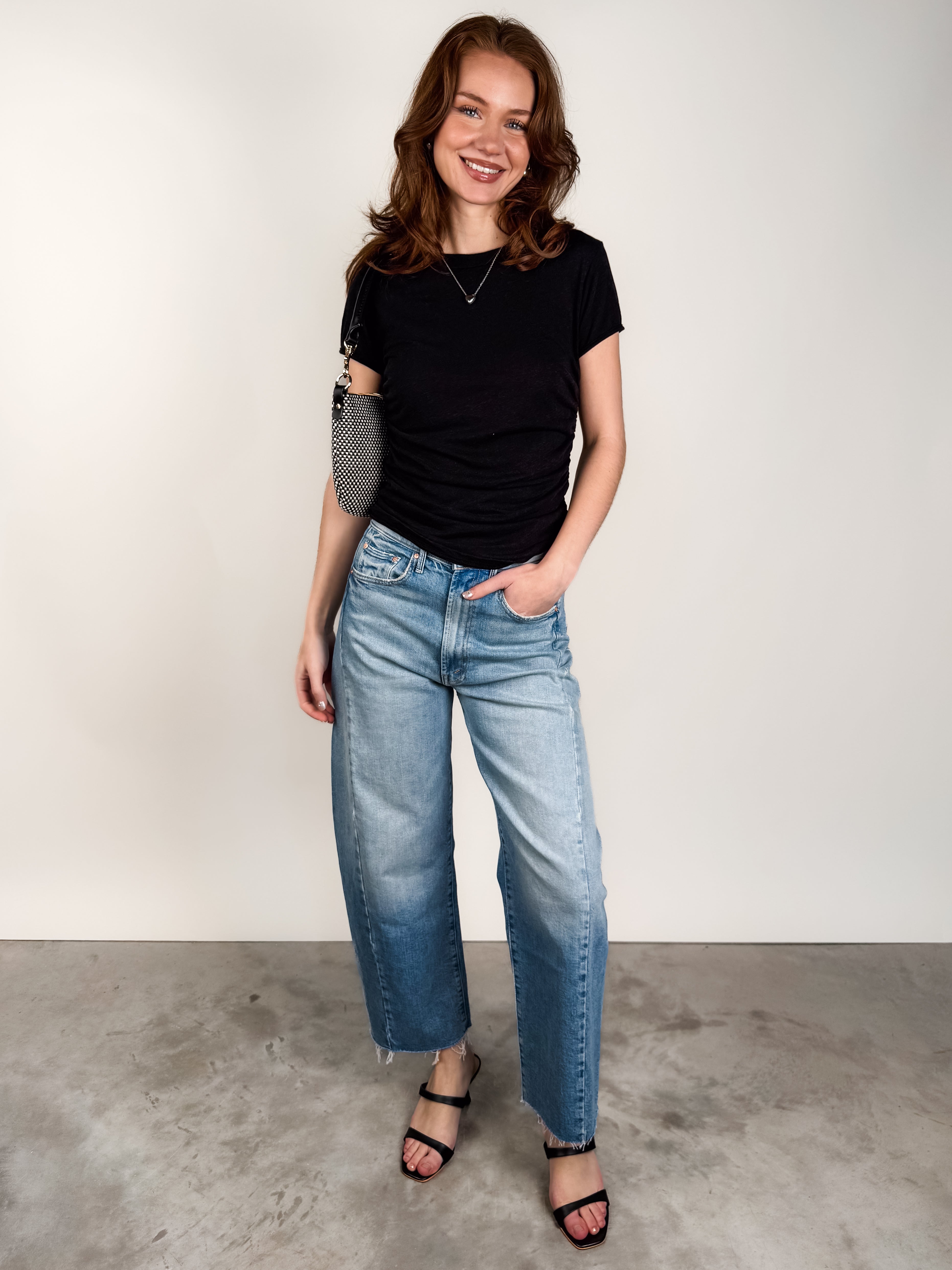 "Izzie Heathered Ruched Baby Tee Look"