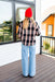Style is relaxed. Model is 5'9 and is wearing a size M.