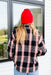 This shacket offers a relaxed, oversized fit perfect for layering. Crafted from a blend of 80% polyester and 20% cotton, it provides a comfortable and durable feel. The classic plaid pattern adds a timeless, casual aesthetic, while the button-down front and collar offer versatile styling options. It's designed to be a go-to piece for transitional weather, offering both warmth and a stylish silhouette.