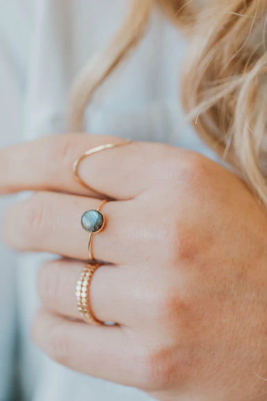 DESCRIPTION: Our Dori ring is made with a gorgeous Labradorite stone. 8mm round or 6x8mm oval labradorite stone. Ring band measures 1mm wide. Je...