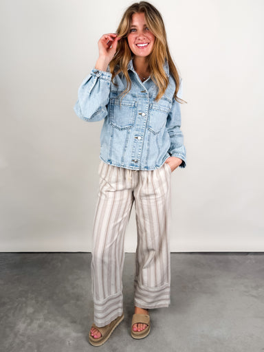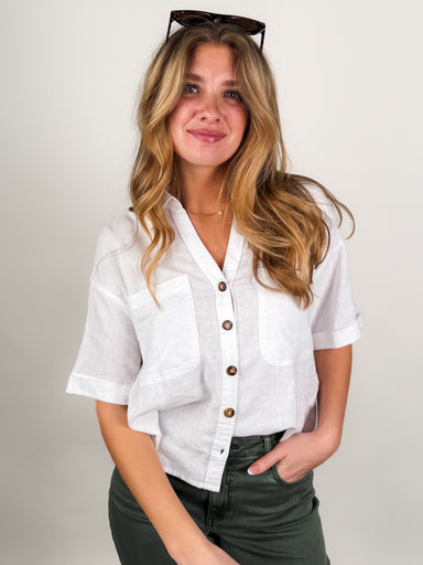 DESCRIPTION:   Button Front Dropped Shoulder Rolled Sleeve Pleated Detail at Hem SIZE & FIT:   Style is relaxed. Model is 5'8 and is wearing ...