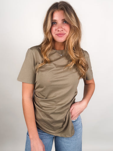 SIZE & FIT: Model is 5'8 and is wearing a size S. MATERIAL & CARE: 96% Cotton, 6% Spandex | Hand Wash Cold DESCRIPTION: Rounded Nec...