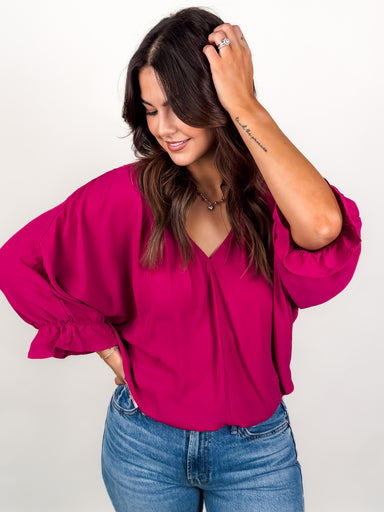 SIZE & FIT: Model is 5'4 and is wearing a size S. MATERIAL & CARE: 100% Polyester | Machine Wash Cold DESCRIPTION: V-Neckline Pleat...