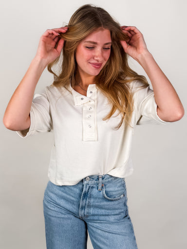 SIZE & FIT: Model is 5'8 and is wearing a size S. MATERIAL & CARE: 60% Cotton, 30% Polyester, 3% Spandex | Hand Wash Cold DESCRIPTION:...