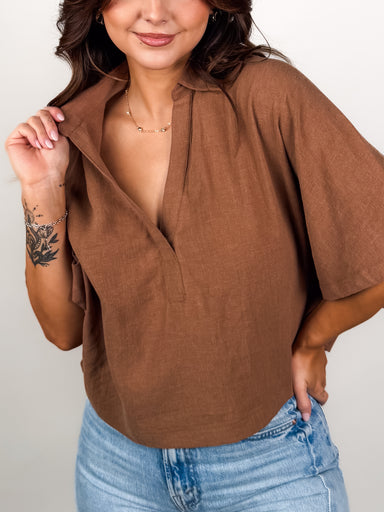 DESCRIPTION: Rounded Neckline Short Sleeves Textured Fabrication with Subtle Sheen Pair with the "Break Her Own Heart Pants" SIZE & FIT: ...