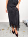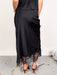 Crafted from smooth, lustrous satin, this high-rise midi skirt brings an elevated touch with a scalloped lace hem. The pull-on silhouette offers comfort and polish in equal measure, perfect for holiday dinners, cocktail hours, and everything in between.