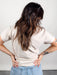 - Accented with an open neckline, feminine sleeve, and a special blind stitch detail at all hems.