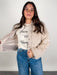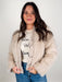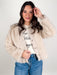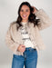 Introducing a stylish cropped jacket in a beautiful beige hue crafted from luxurious fine fur for a soft and cozy feel. This jacket showcases a charming vintage three-button closure that adds a touch of elegance while the elastic waist not only enhances the fit but also provides comfort throughout the day. Perfect for layering over your favorite tops this versatile piece is ideal for both casual outings and more dressed-up occasions making it a delightful addition to your wardrobe!