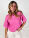 Style is relaxed. Model is 5'8 and is wearing a size S.