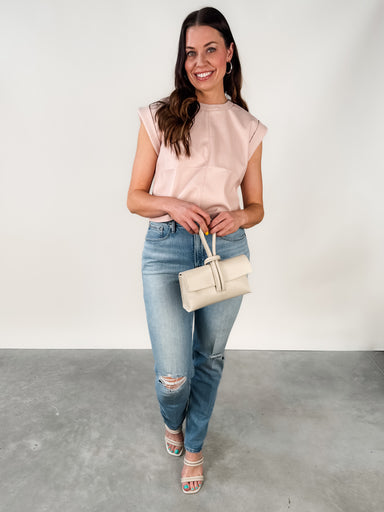 DESCRIPTION: Made from slub rib fabric, this crew neck top is lightweight and easy to wear. We love it tucked into the Remi Denim, Renae Rib Pan...