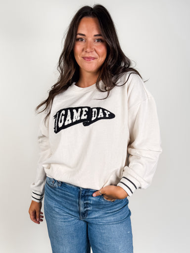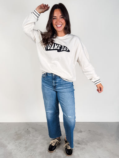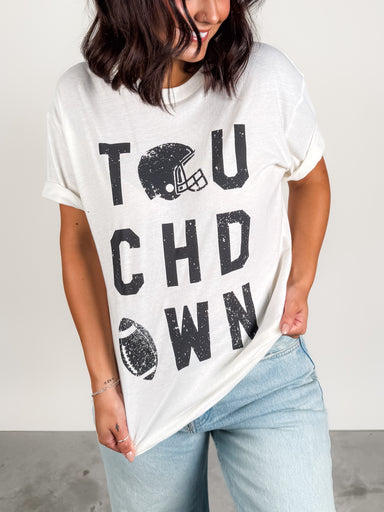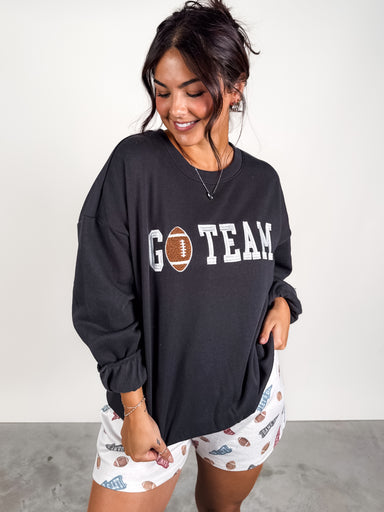 DESCRIPTION: Holiday Merchandise is Final Sale Rounded Neckline Dropped Shoulder Front Graphic Detail SIZE & FIT: Style is relaxed. Model...