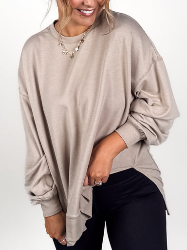 DESCRIPTION: High rise Full length Elastic waistband Side seam pockets Lightweight Heavy soft wash Relaxed fi SIZE & FIT: Inseam is 30"...