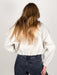 Style is relaxed. Model is 5'8 and is wearing a size S.
