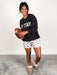 Style is relaxed. Model is 5'4 and is wearing a size M.