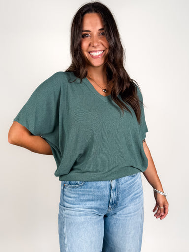 DESCRIPTION: This relaxed-fit V-neck dolman top is designed for everyday comfort with an effortlessly flattering drape. Cut from a soft and breatha...