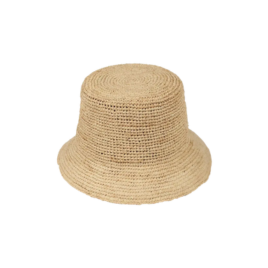 DESCRIPTION: Women's hat - Crochet Raffia, 2.5" downward brim, flat crown, elastic tie in crown This crochet raffia hat features a stylish 3.5-in...