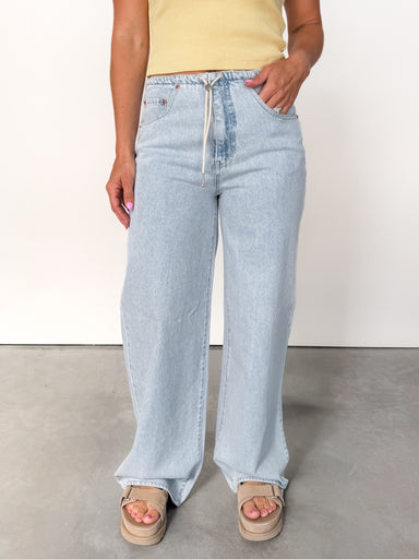 DESCRIPTION: The perfect easy pair, these low-and-loose jeans from We The Free are featured in a pull-on style with a drawcord waistband and cuff...