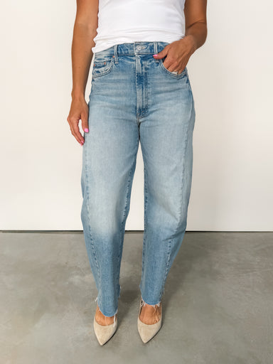 DESCRIPTION: Expect curves ahead in the Venice Barrel Leg. The Venice is a high rise barrel leg featuring a pre-rolled cuff for a laid-back look....