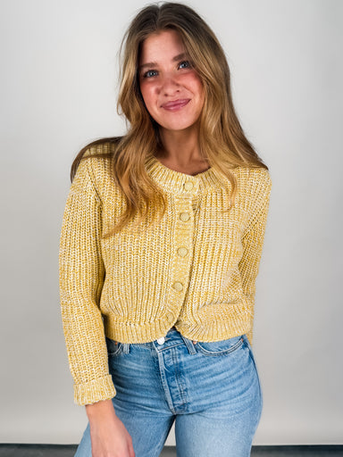 DESCRIPTION: Button Front Ribbed Trims Covered Buttons Heavier Knit Fabrication SIZE & FIT: Style is relaxed. Model is 5'8 and is wearing...