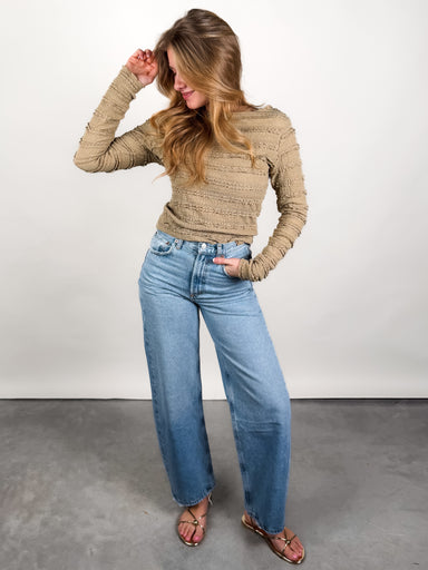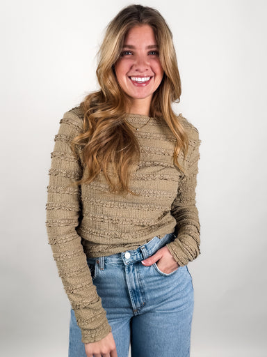DESCRIPTION: Crew Neckline Dropped Shoulder Long Sleeves Ribbed SIZE & FIT: Style is relaxed. Model is 5'8 and is wearing a size S. MATE...