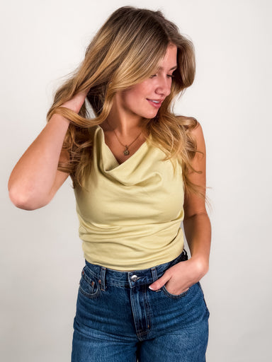 SIZE & FIT: Model is 5'8 and is wearing a size S. MATERIAL & CARE: 95% Cotton, 5% Spandex | Hand Wash Cold DESCRIPTION: Cowl Neckli...