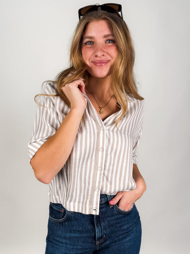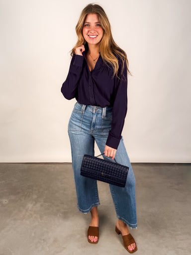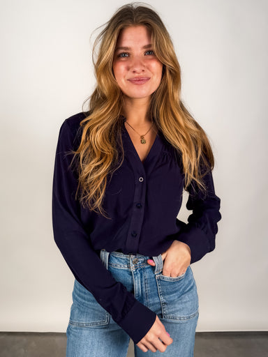 DESCRIPTION: Button Front Dropped Shoulder Rolled Sleeve Pleated Detail at Hem SIZE & FIT: Style is relaxed. Model is 5'8 and is wearing ...
