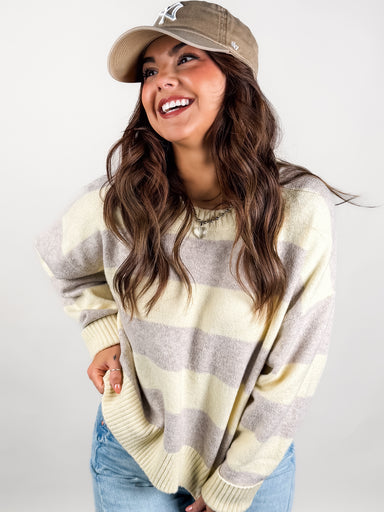 DESCRIPTION: This cotton blend sweater is an instant favorite with its two-tone stripe, relaxed fit, and midweight feel. Looks effortless paired...