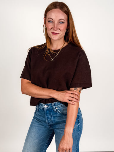 DESCRIPTION: Crew Neckline Short Sleeves Ribbed Trims Boxy Silhouette SIZE & FIT: Style is relaxed. Model is 5'4 and is wearing a size S...