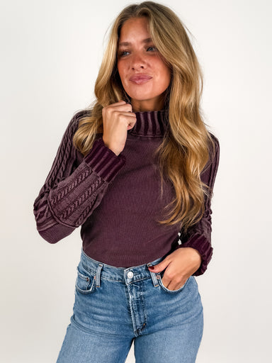 DESCRIPTION: The ultimate cozy option, this top from We The Free features all of our favorite fabrications like cable-knit trims and a comfy waff...